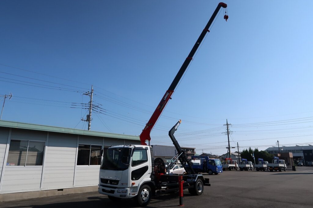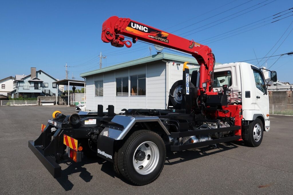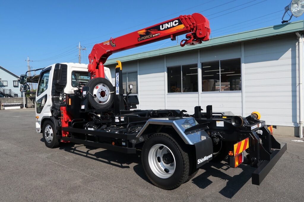 ユニック製 URG374A(差し違いジャッキ) 4段クレーン ラジコン フックイン ML警報型 新明和製CCA44ー31ーC ツインホイスト 動作切替レバー 未使用車
